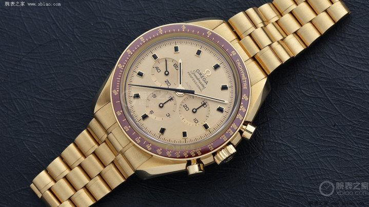 再把观点聚焦到欧米茄。现在欧米茄所主导的专属材质为“MoonShine 18K金”和“青铜金”。先说MoonShine 18K金,它包含了 75% 黄金,并加入了异常的铜、银和钯元素。其中钯取代了传统18K金中的锌,普及了材质抗消释才智。MoonShine 18K金首发于2019年的“超霸系列阿波罗11号50周年记念限量版手表”(型号310.60.42.50.99.001),如今已现实至超霸系列、星座系列与碟飞系列的多款新品。