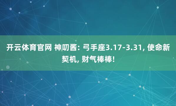 开云体育官网 神叨酱: 弓手座3.17-3.31, 使命新契机, 财气棒棒!