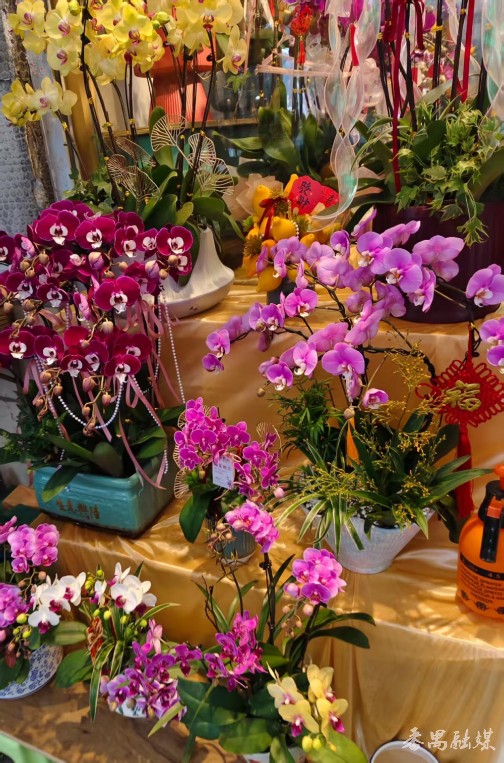 除此除外,看成市桥街的购花点之一,东涌路沿线同步设有多个年花年桔售卖商铺。蝴蝶兰、年桔、红掌、水仙等传统年花整皆陈设,眩惑市民纷纷选购。