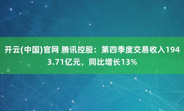 开云(中国)官网 腾讯控股:第四季度交易收入1943.71亿元,同比增长13%