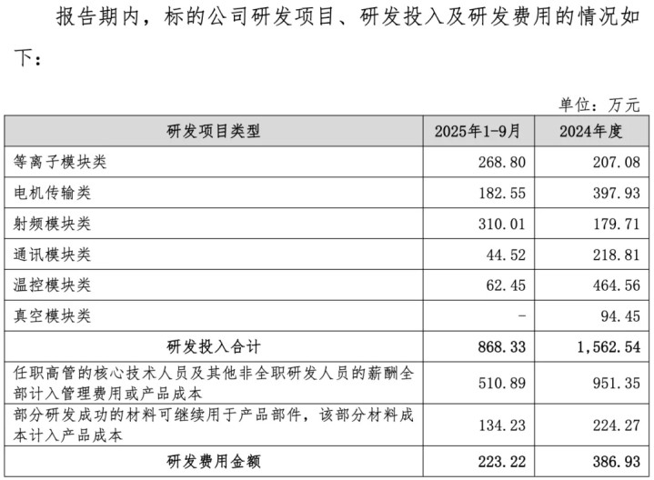 不仅如斯,其败露的六大研发主见,温控模块从2024年的464万元骤降至2025年前三季度的62万元,降幅达87%;通讯模块降幅80%;真空模块径直归零。如斯巨幅波动,更接近按订单驱动的工程调试支拨,而非系统性的自主时刻研发。