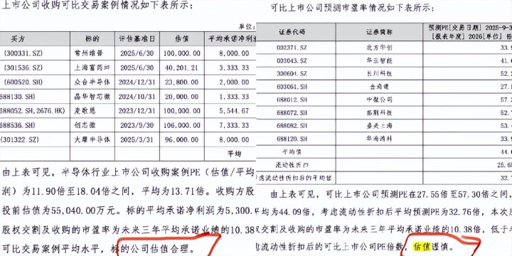 在估值论证中,康欣新材征引了连年半导体行业收购案例和朔方华创、中微公司等8家沪深半导体开采上市企业市盈率数值,最终得出本次收购“估值严慎、合理”的论断。