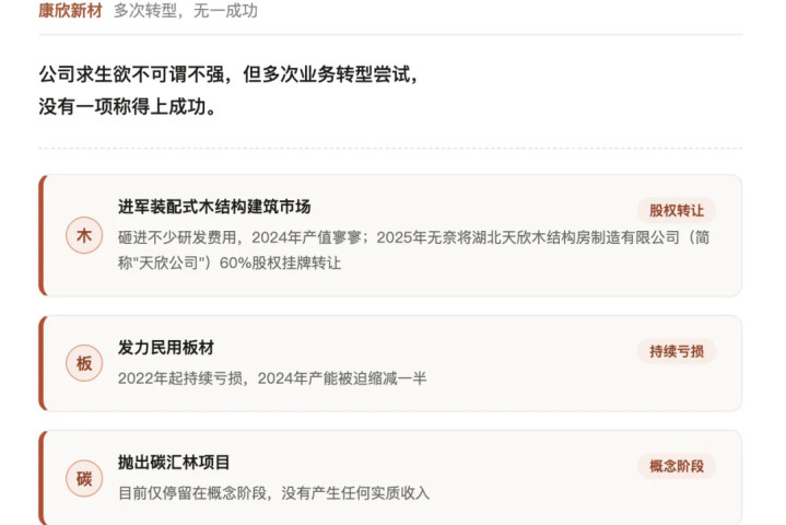 无锡建发“战投”康欣新材的这些年,公司求生欲不可谓不彊,但屡次业务转型尝试,莫得一项称得上得胜。