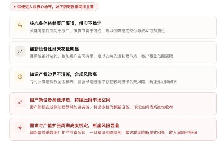 这也从侧面印证了“翻新生意模式”在成本市集的窘境:即便搭上半导体赛说念的光环,“开采翻新赛说念”内在的结构性制约仍未改变,这决定了它难以孤苦成为上市公司的中枢业务,难言“存在被低估的结构性机遇”。