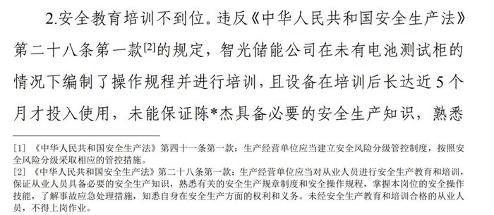 造访后果认定,职工存在违抗规程操作活动。同期,智光储能也存在风险辨识不到位、安全训练培训不到位等问题。记者顾惜到,开云体育官网2024年1月19日,智光储能便已批准通过了《电气测试柜操作规程》,但直到4月,电气测试柜才拼装完成。造访讲演中提到,智光储能公司在未有电板测试柜的情况下编制了操作规程并进行培训,且建筑在培训后长达近5个月才干与使用,未能保证员器用备必要的安全分娩常识等。