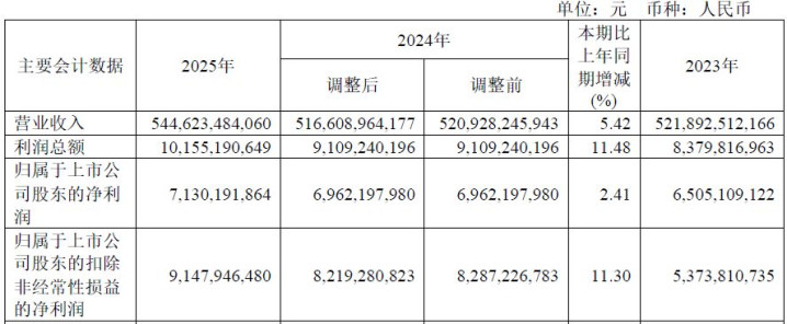 3月26日盘后,江西铜业(SH600362,股价44.21元,市值1531亿元)泄漏2025年年报。该年报泄漏,江西铜业2025年兑现营收约5446.23亿元,同比增长5.42%;兑现包摄于上市公司鼓吹的净利润约71.30亿元,同比增长2.41%;兑现扣非净利润约91.48亿元,同比增长11.3%;基本每股收益2.07元,同比增长2.99%。公司拟派发末期现款红利0.6元/股(2025全年累计派发1.0元/股)。