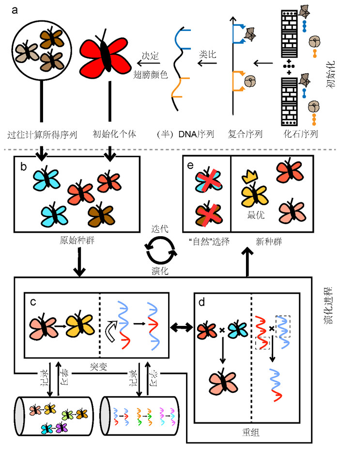 为了从海量数据中收复出委果的演化历程,古生物学家和东说念主工智硬汉人联手,革命性地竖立了受东说念主工智能启发的新一代定量地层学算法——基于演化算法的治理最优化法(ConstrainedOptimisation-EvolutionaryAlgorithm,CONOP.EA)。该算法的想路很挑升想:把每个可能的民众地层对比决议模拟成一段“DNA”,然后让这些“DNA”像生物一样履历变异、重组和天然给与。每一代“DNA”中,开云体育官网更优的决议被保留,较差的被淘汰。经由大齐次的迭代,最终筛选出最合理、最一致的地层对比恶果(图2)。