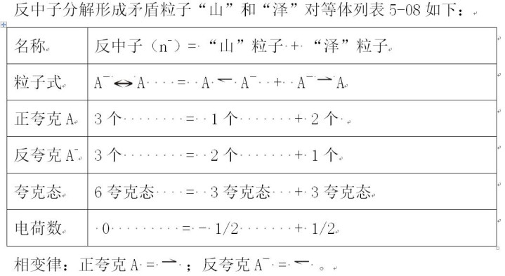 当两个反中子以接近光速的速率互相碰撞时,在某些情况下不会落空,而是相互反弹并散射,会在极短时期内领会造成矛盾粒子“山”和“泽”的平等体。参见表5-08。