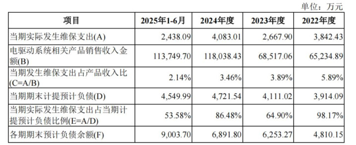 复兴函表露,公司期内骨子发生的维保用度占销售收入的比例握续下跌,各期区别为5.89%、3.89%、3.46%及2.14%,自2023 年起占比低于4%,各期骨子发生维保支拨小于当期计提瞻望欠债金额。