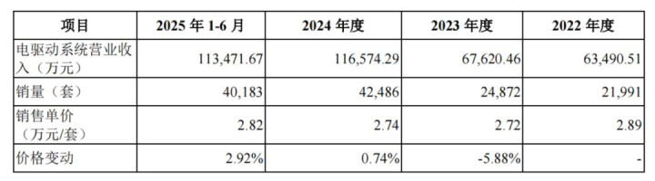期内,公司电驱动系统的平均销售单价区别为2.89万元/套、2.72万元/套、2.74万元/套和2.82万元/套,举座保握领路。
