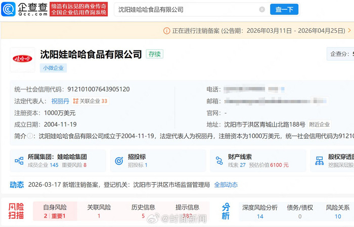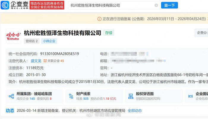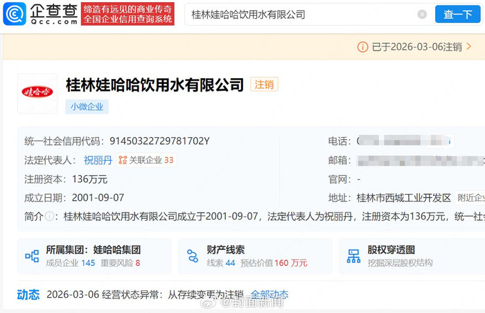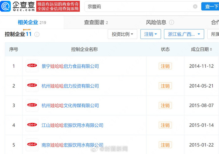 [#宗馥莉近期刊出名下多家公司#]#宗馥莉多家实控公司拟刊出#企查查APP败露,近日,宗馥莉实控的多家公司拟刊出,包括沈阳娃哈哈食物有限公司、杭州宏胜恒泽生物科技有限公司、吉林市娃哈哈启力乳品有限公司、杭州娃哈哈精密机械有限公司、杭州娃哈哈电子商务有限公司。此外,开云体育(中国)官方网站陕西娃哈哈宏振饮用水有限公司、桂林娃哈哈饮用水有限公司、南京娃哈哈宏振饮用水有限公司、杭州娃哈哈文化传媒有限公司已于本年2月25日至3月6日持续完成刊出,上述公司均由宗馥莉实控,其在上述公司任董事、推论董事等职务。